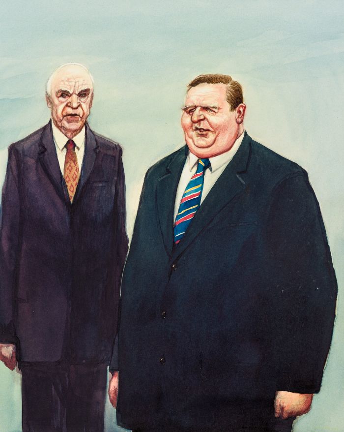 Mit gewohnt bissigem Humor porträtiert Manfred Deix den frisch gewählten Kanzler Schröder in seiner unnachahmlich entlarvenden Art. Karikatur und Zeitgeschichte treffen hier pointiert aufeinander