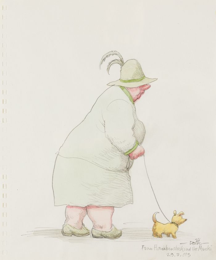 Mit liebevoller Boshaftigkeit malt Deix das ungleiche Paar. Er vereint Charakterstudie mit gesellschaftlicher Satire. Immer treffsicher, schräg und humorvoll.