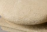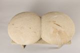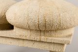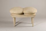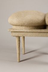 Markus Hofer spielt mit der Wahrnehmung und dem Spannungsfeld zwischen Material, Funktion und Erwartung. Eine kleine Sitzbank wird von zwei runden, kissenartigen Formen aus Beton gekrönt, ein kraftvolles Spiel mit Gegensätzen. Was weich und einladend scheint, entpuppt sich als hart, schwer und unbeweglich. Hofer unterläuft mit dieser Umkehrung vertrauter Materiallogik unsere sinnliche Erfahrung und führt sie ad absurdum. Der vermeintliche Komfort wird zum skulpturalen Trugbild, das den Betrachter zwischen Komik und Irritation zurücklässt.