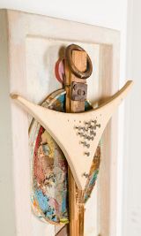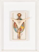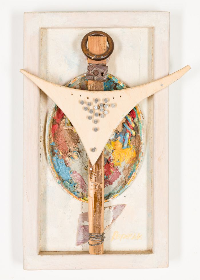 Die vorliegende Assemblage löst die Grenze zwischen Skulptur und Malerei auf. In seiner charakteristischen Verbindung von gefundenen Objekten, Farbe und Struktur entsteht ein Werk von intensiver Symbolik und physischer Präsenz. Das Kreuzmotiv, zentral und zugleich fragmentarisch interpretiert, fungiert als formaler wie spiritueller Ankerpunkt. Popov nutzt die Materialität von Holz, Metall und Farbresten nicht nur als Träger, sondern als Ausdrucksmittel, um Themen wie Vergänglichkeit, Glaube und Transformation in eine zeitgenössische Bildsprache zu übersetzen.