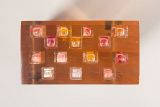 In diesem charakteristischen Werk aus der Serie der 'Accumulations' versammelt Arman eine Vielzahl gebrauchter Nagellackfläschchen, lässt ihren Inhalt herausfließen und konserviert diesen Prozess dauerhaft in transparentem Polyesterharz.