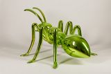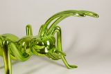 Mario Dalpras 'grüne Ameise' besticht durch ihre dynamische Formensprache und die leuchtend grüne Farbgebung. Die glatte, glänzende Oberfläche reflektiert das Licht und verleiht der Skulptur zusätzliche Präsenz.