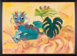 Lot Nr: 257 - Stillleben mit Drachenfigur, Monstera und Früchten